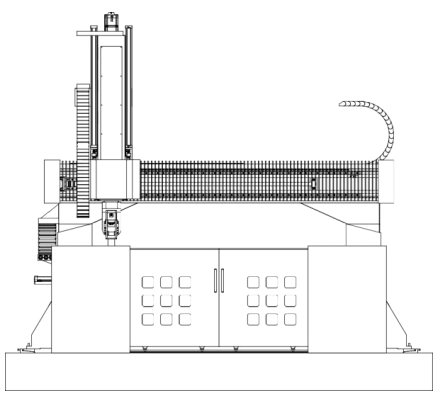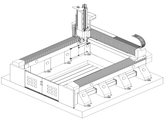 采用立體工業造型行業常用的橋架結(jié)構設計原理(lǐ),橫梁移動式龍(lóng)門銑床。龍門架是機床整體剛性的表現。設備床(chuáng)身